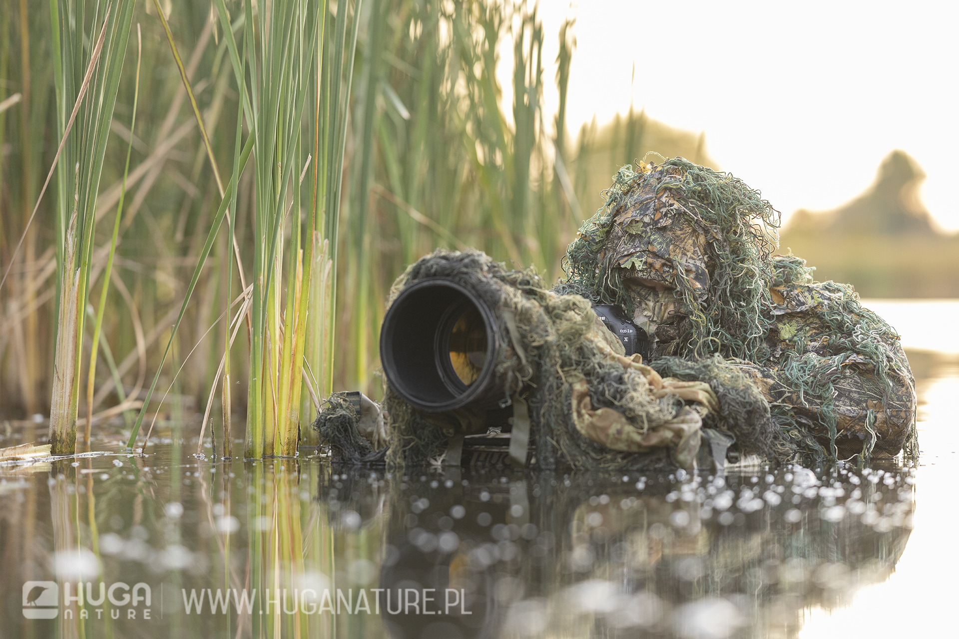 Namiot ma formę dwóch kopuł, rozpiętych na łukowato zgiętych pałąkach z duraluminium. Tego typu rozwiązanie pozwala na efektywne wykorzystanie przestrzeni przy jednoczesnym ograniczeniu nadmiernej wysokości całej konstrukcji. Tkanina jest wodoodporna i oddychająca, a namiot jest wyposażony w rękaw ze ściągaczem co stanowi formę raincover-a. By poprawić możliwości obserwacji, mamy dostęp do trzech okienek zamykanych na magnetyczne klapy. Jedno panoramiczne z przodu i dwa boczne. Na jednej ze ścian znajduje się wodoodporny organizer z trzema osobnymi kieszeniami zamykanymi na zamek bryzgoszczelny. Pozwala on na bezpieczne przechowywanie telefonu, baterii, kart pamięci itp. Dzięki zapięciu na napy można go swobodnie demontować i montować do ściany namiotu. Na każdej ze ścian doszyte są linki, dzięki którym można korzystać z naturalnego kamuflażu, przywiązując wiązki roślinności do ścian namiotu. Sam namiot można także wykorzystać samodzielnie, kotwicząc go do gruntu szpilkami namiotowymi, zyskując pomniejszoną wersję namiotu snajperskiego.